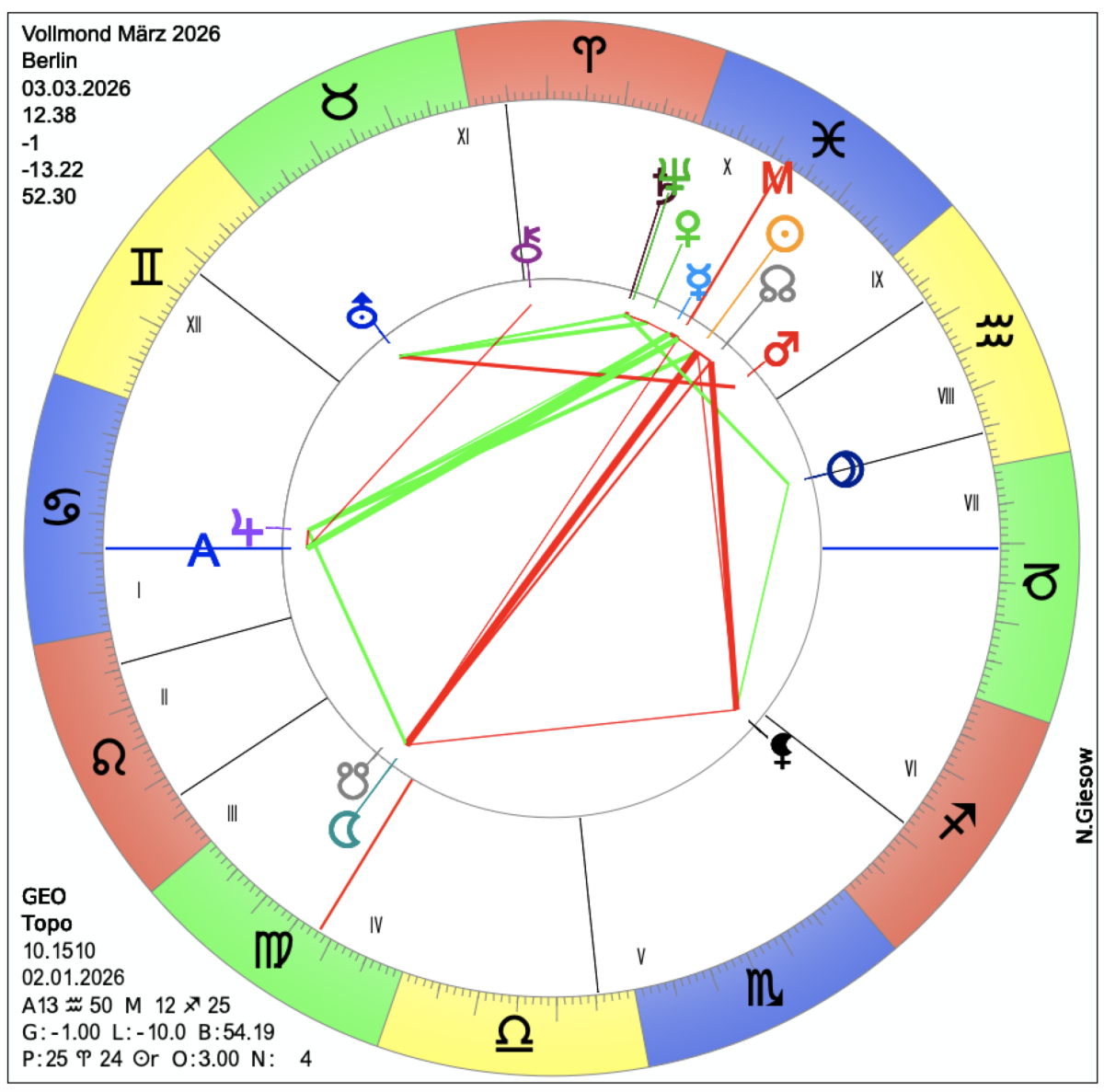 03.03. Vollmond 12.38 Uhr Sonne in den Fischen, Mond gegenüber auf 12°54` Jungfrau